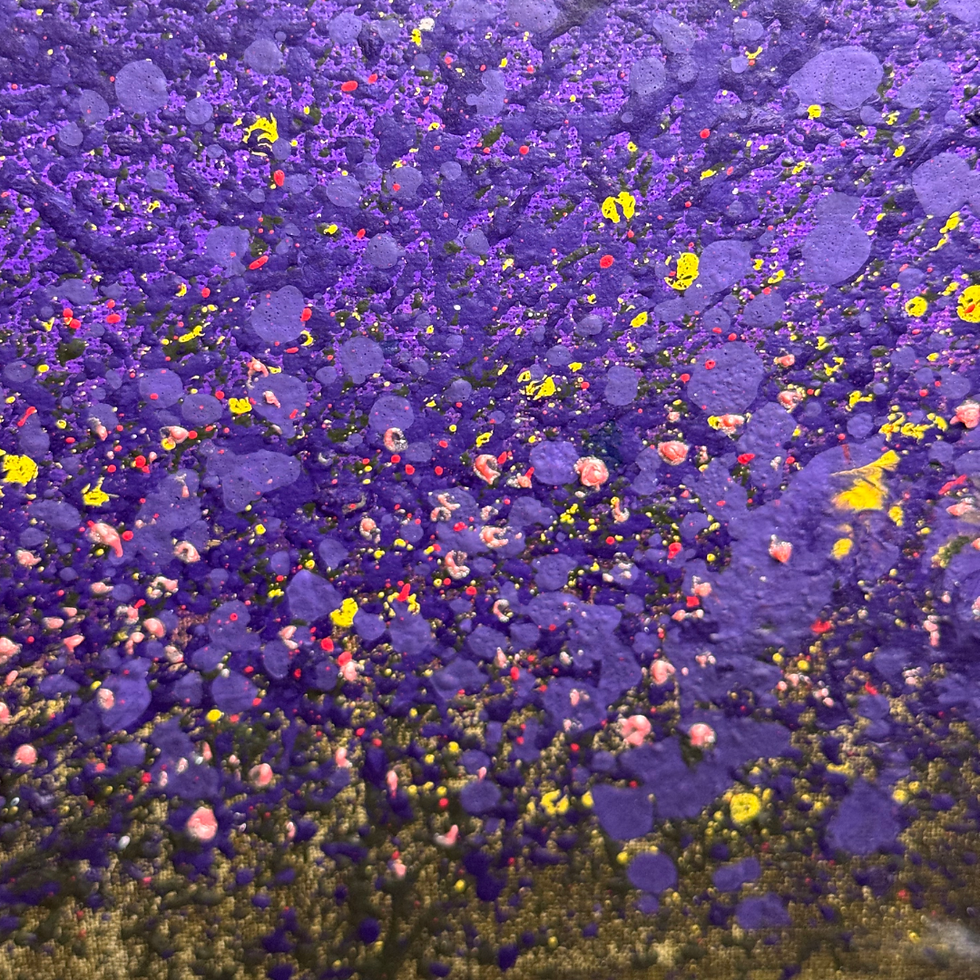 By using a variety of materials, Ian achieves dimension, depth, and character on his canvases.